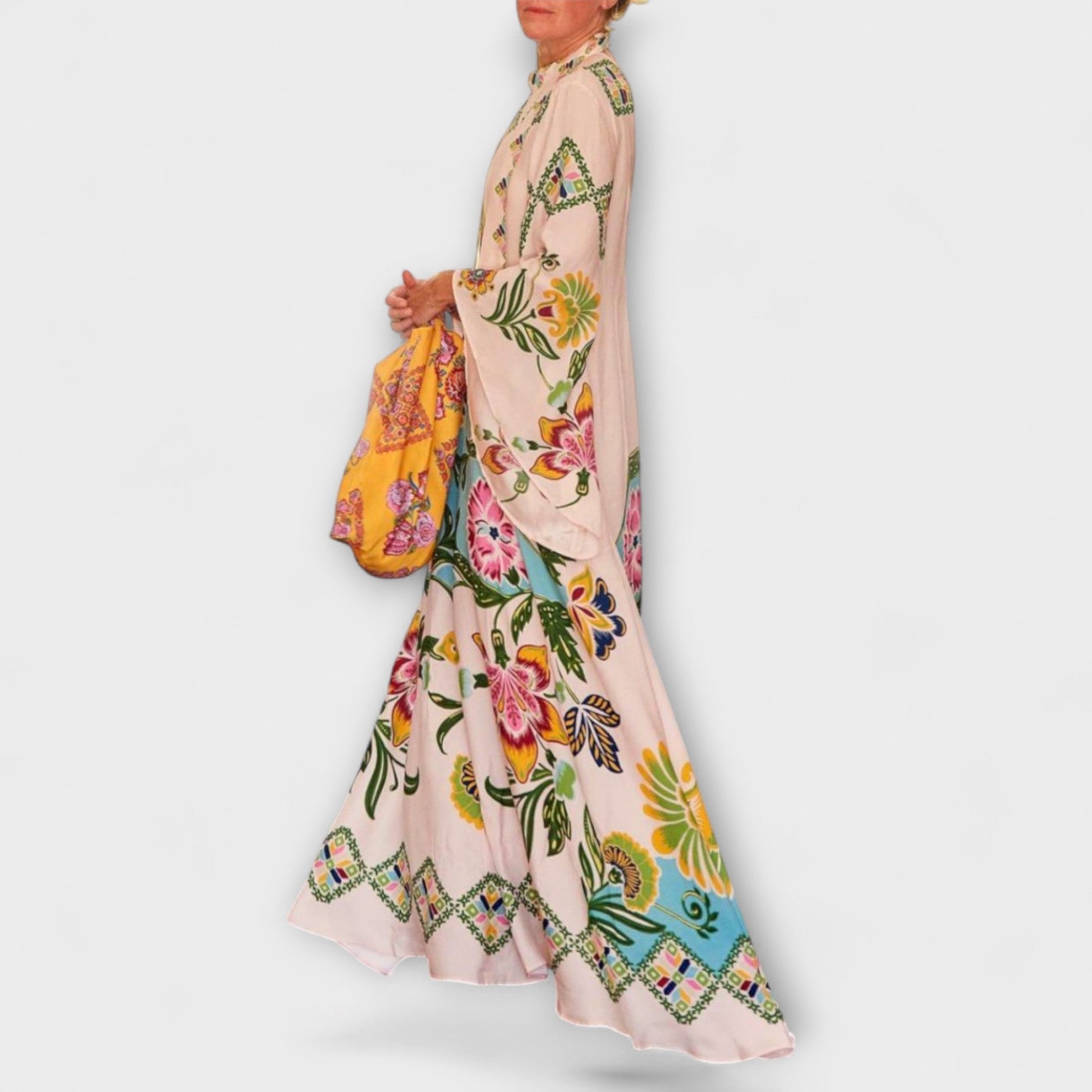 Elevate Your Wardrobe with our stunning maxi dress that features a vibrant sunny floral print. Crafted from high-quality, soft, and breathable fabric, this dress ensures all-day comfort while making a stylish statement.
